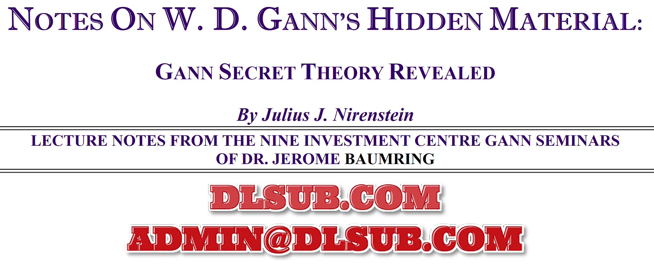 Julius Nirenstein Notes On Wd Ganns Hidden Material The Complete Gann I Ix Lecture Notes Usd 1500