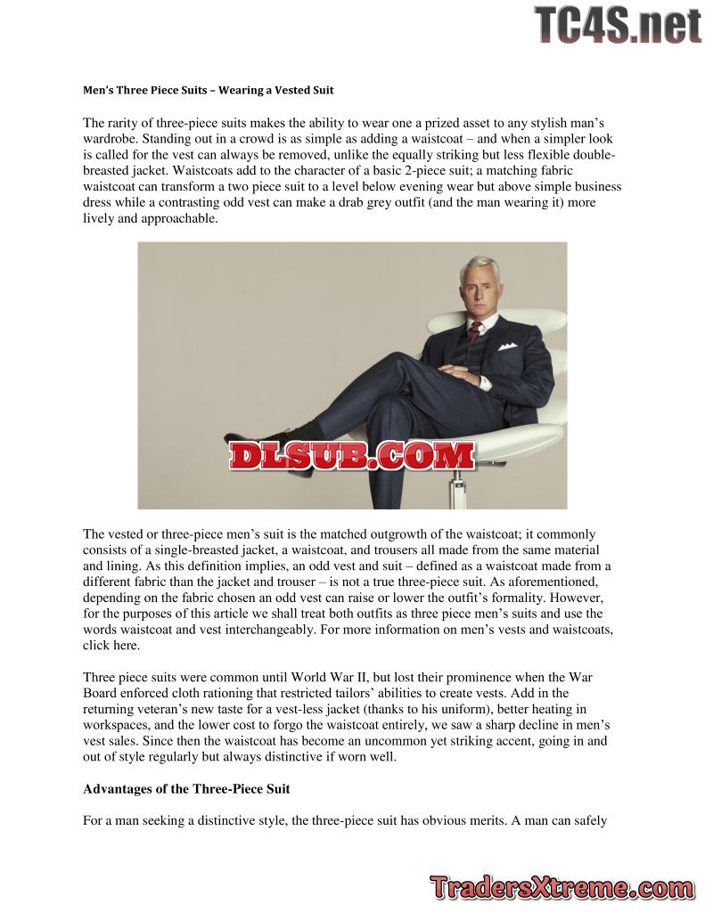 Mens Three Piece Suits Wearing A Vested Suit - JPG Image File