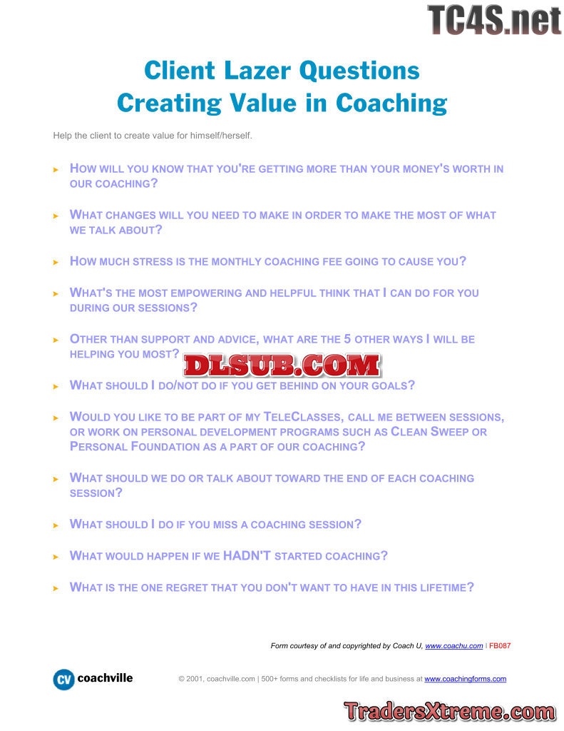 Client Lazer Questions Creating Value In Coaching - JPG Image File