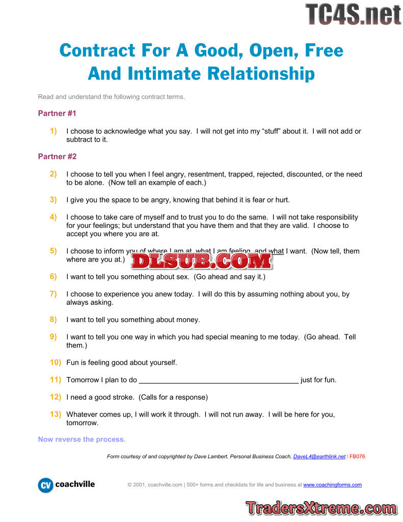 Contract For A Good Open Free And Intimate Relationship - JPG Image File