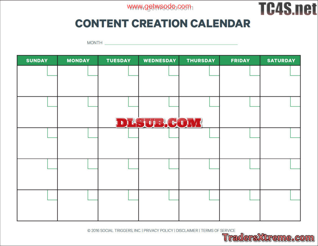 Content Creation Calendar - JPG Image File