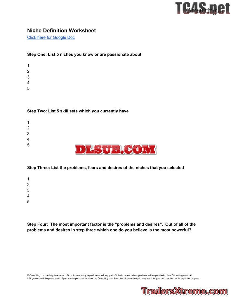 Niche Definition Worksheet - JPG Image File