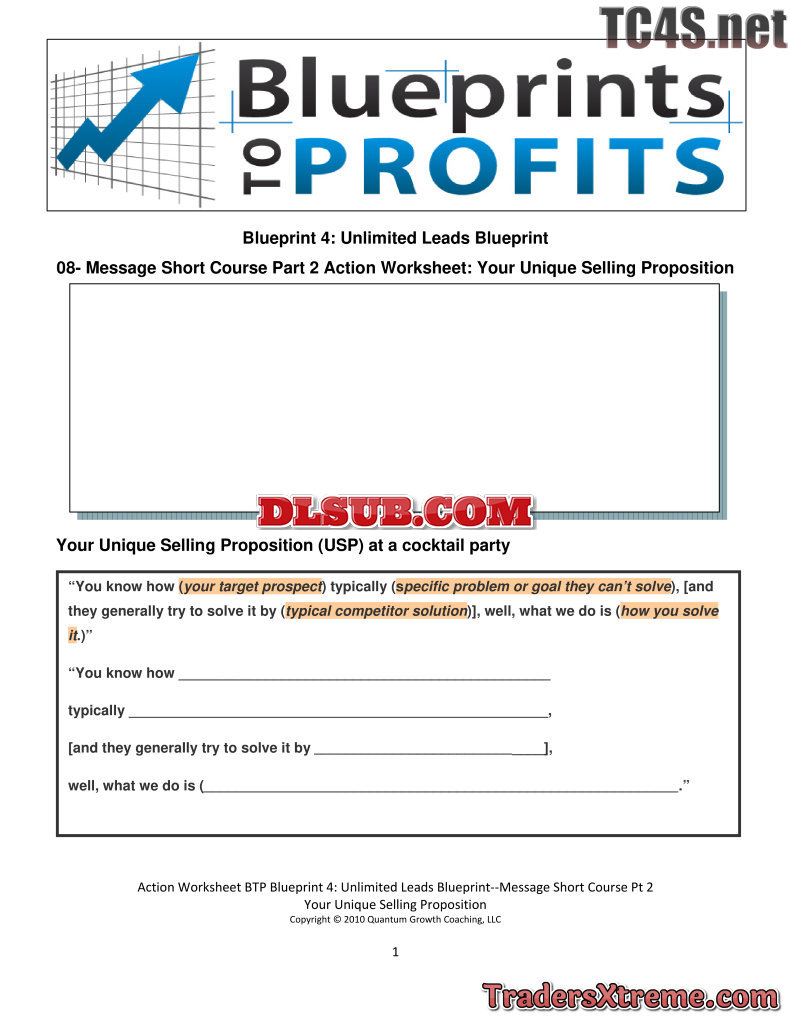 Ulb 08 Message Short Course Pt2 Your Unique Selling Proposition Action Worksheet - JPG Image File