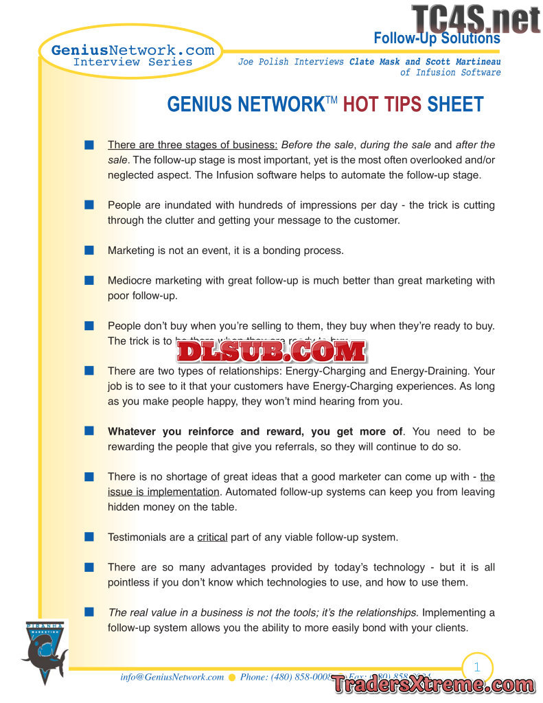Geniusnetwork Infusion Hottipssheet - JPG Image File