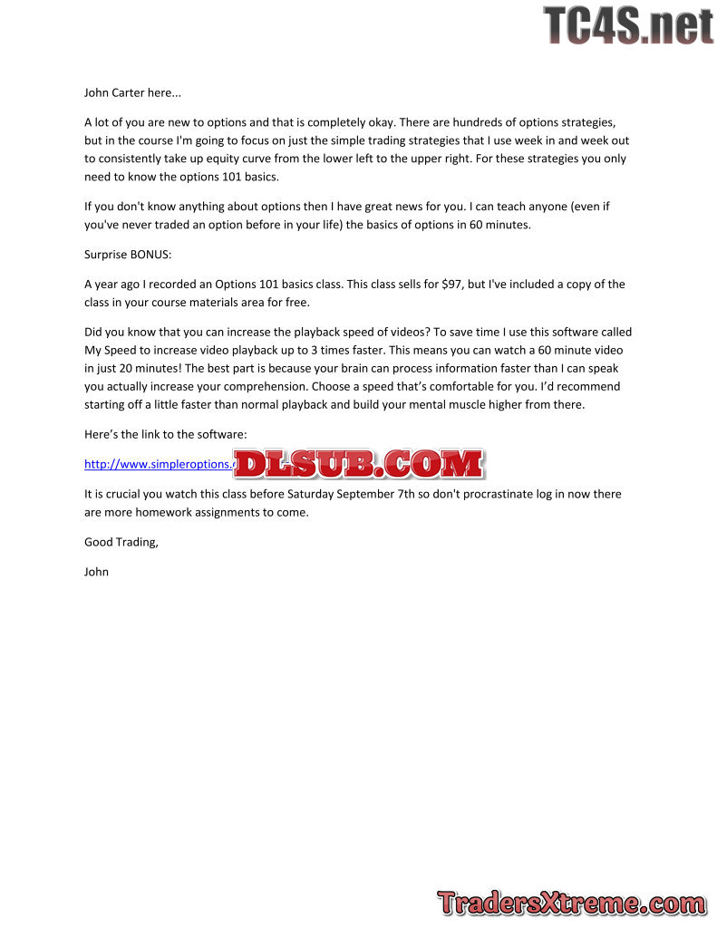 John Carter Simpleroptions Insiders Guide To Trading Weekly Options Strategies Class Usd 749