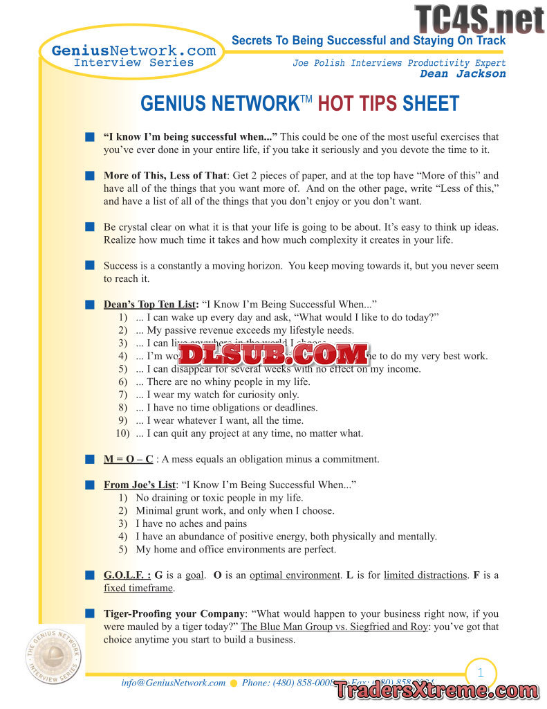 Geniusnetwork Deanjackson Hottips Sheet - JPG Image File