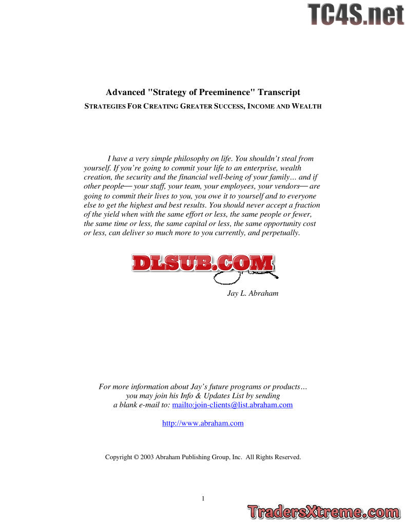 Jay Abraham Advanced Strategies Of Preeminence Transcript - JPG Image File