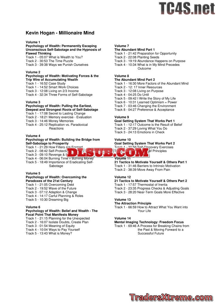 Kevin Hogan The Millionaire Mind Cd Contents - JPG Image File
