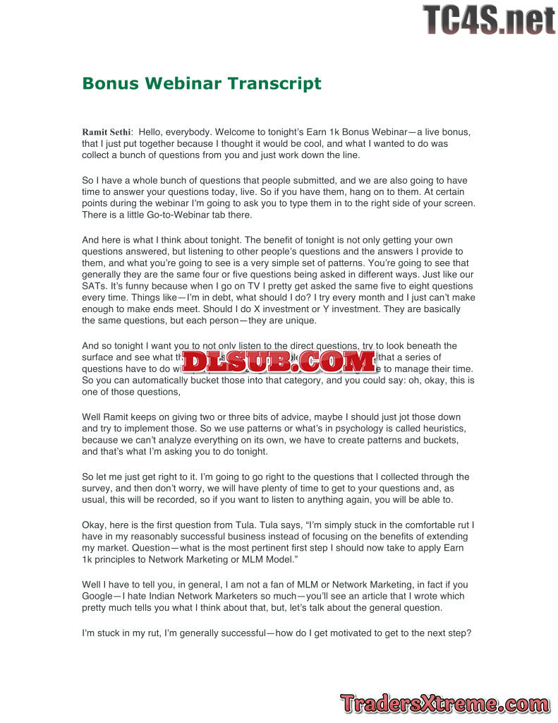 Earn1k Bonus Webcast Toughest Questions Transcript - JPG Image File