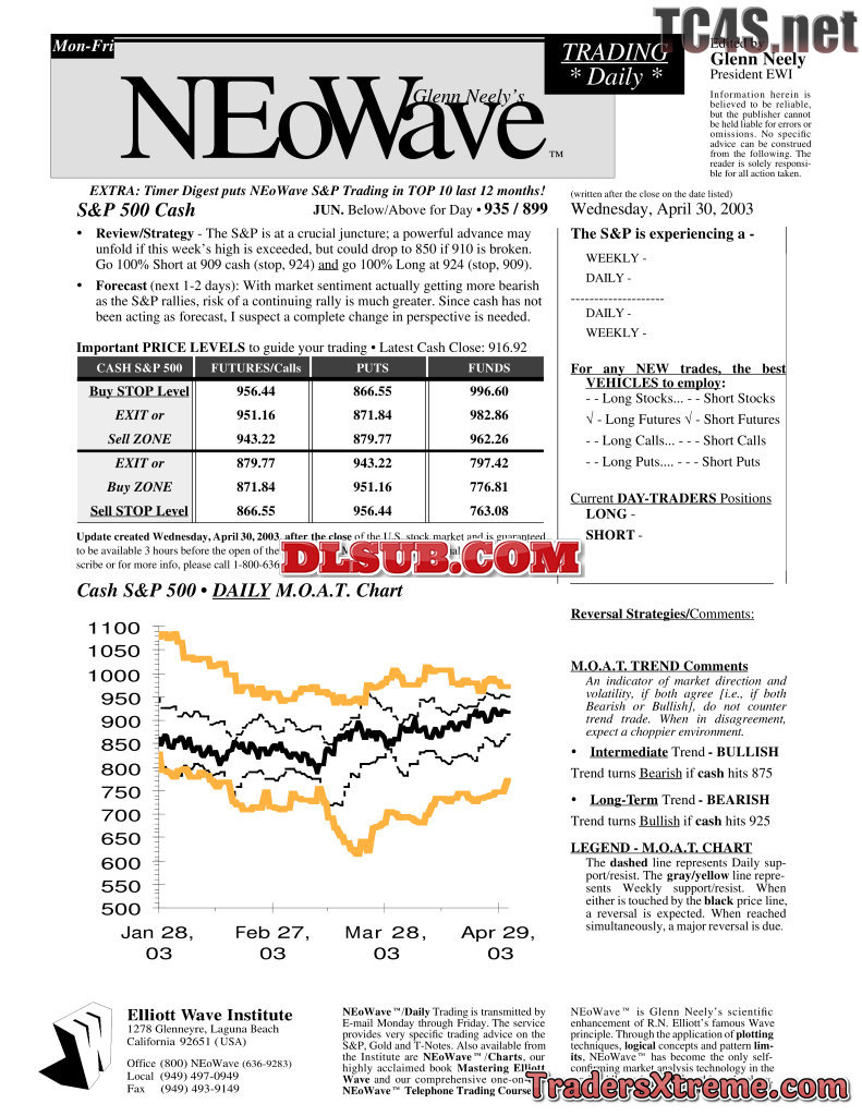 2003 04 30 Neowave Trading Forecast Daily Update - JPG Image File
