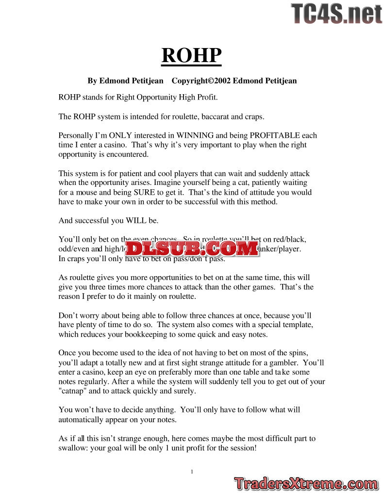 Edmond Petitjean Rohp System For Roulette Letstalkwinning