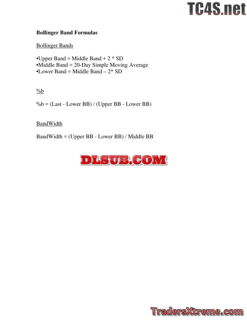 Bollinger Bands Formulas - JPG Image File