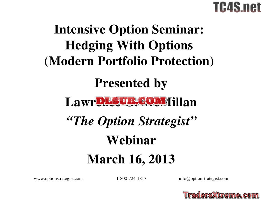Larry Mcmillan Mcmillans Intensive Option Seminar Hedging With Options Modern Portfolio Protection 20130316