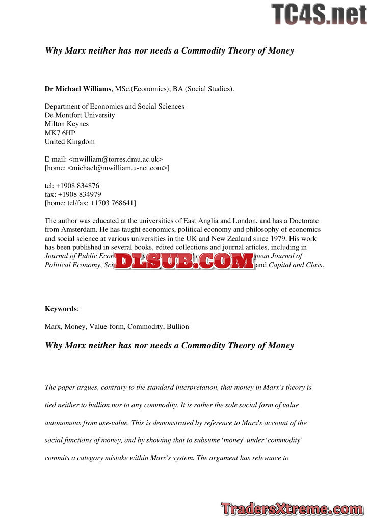 Michael Williams Why Marx Neither Has No Needs A Commodity Theory Of Money