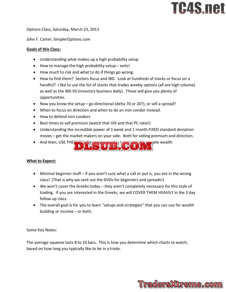 John Carter Simpleroptions Options Income Generating Blueprint Course Strategy And Theory Course Usd 497