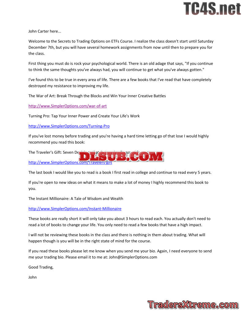 John Carter Simpleroptions Secrets To Trading Options On Etfs Theory Class Usd 497