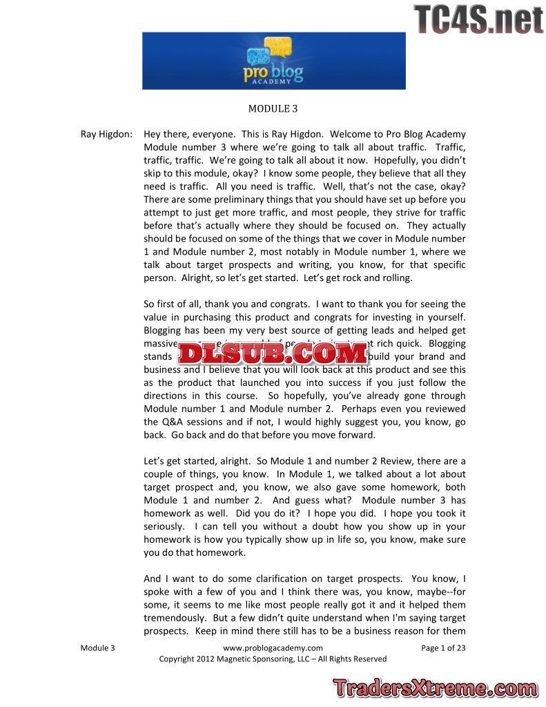 Ray Higdon Pro Blog Academy Usd 497