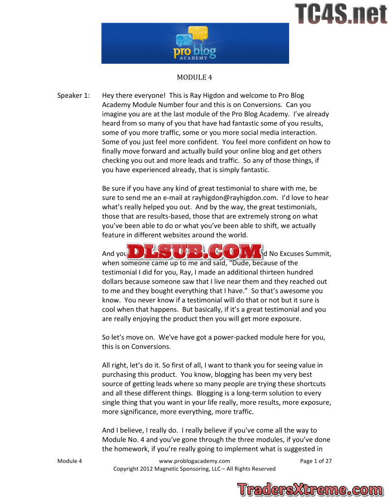 Ray Higdon Pro Blog Academy Usd 497